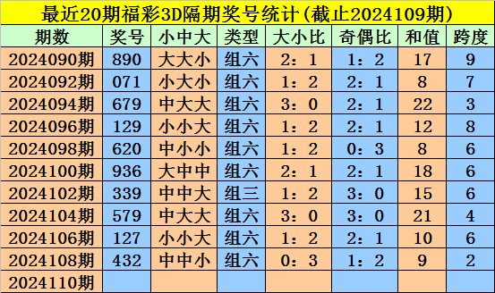 奖号类型判断:近期周一组六证实活跃,近十周开出10次,上周一为组六,组三出现较少,本周一看好在组六。