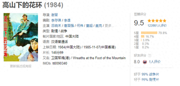 由谢晋拍摄于1983年的《峻岭下的花环》,豆瓣评分9.5分,被大家称作“神作”。