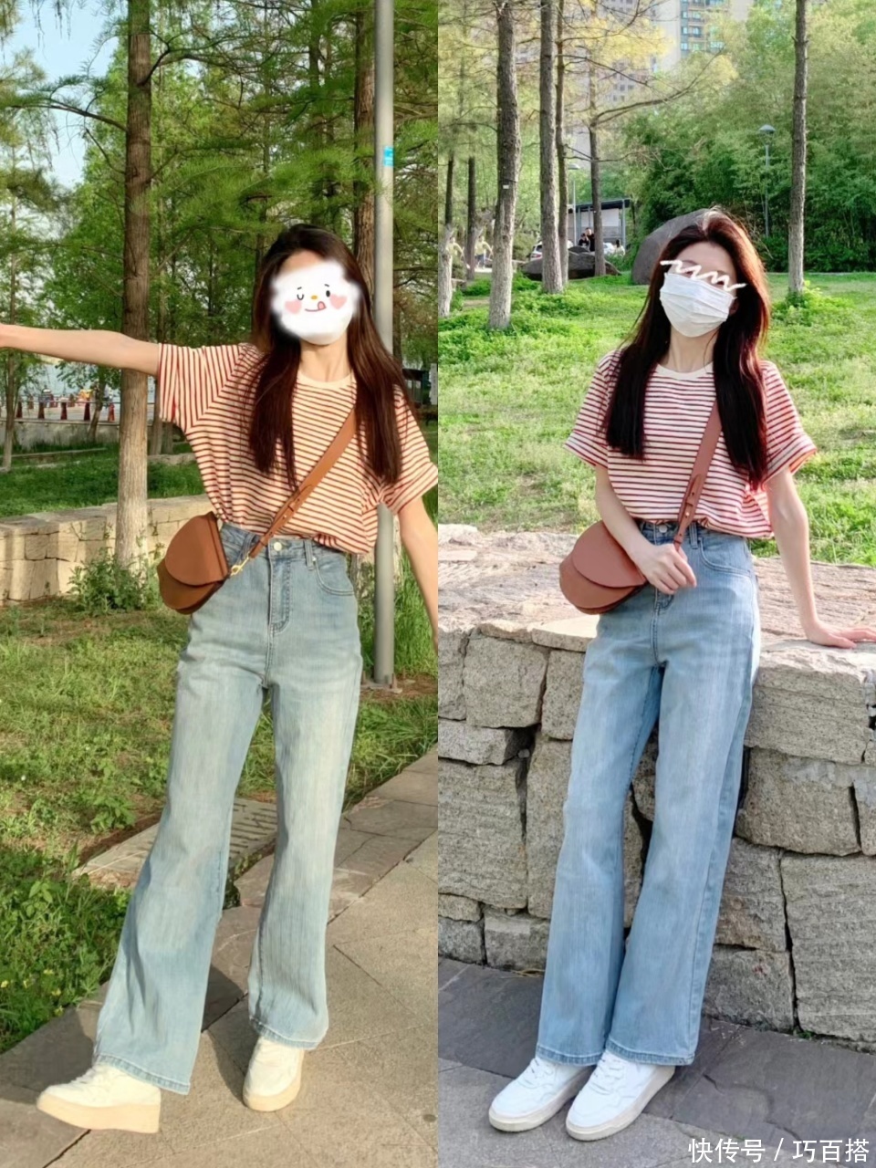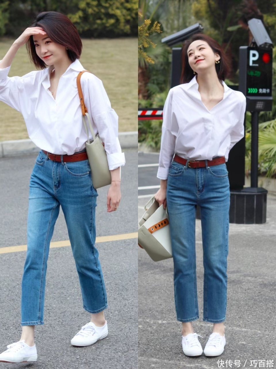 好多密斯姐惦记穿不出博主这种遵循,其实很容易学,只消环球在穿牛仔裤之前,把边边角角熨烫平整,长裤上衣就和画报相通干净利索了。
