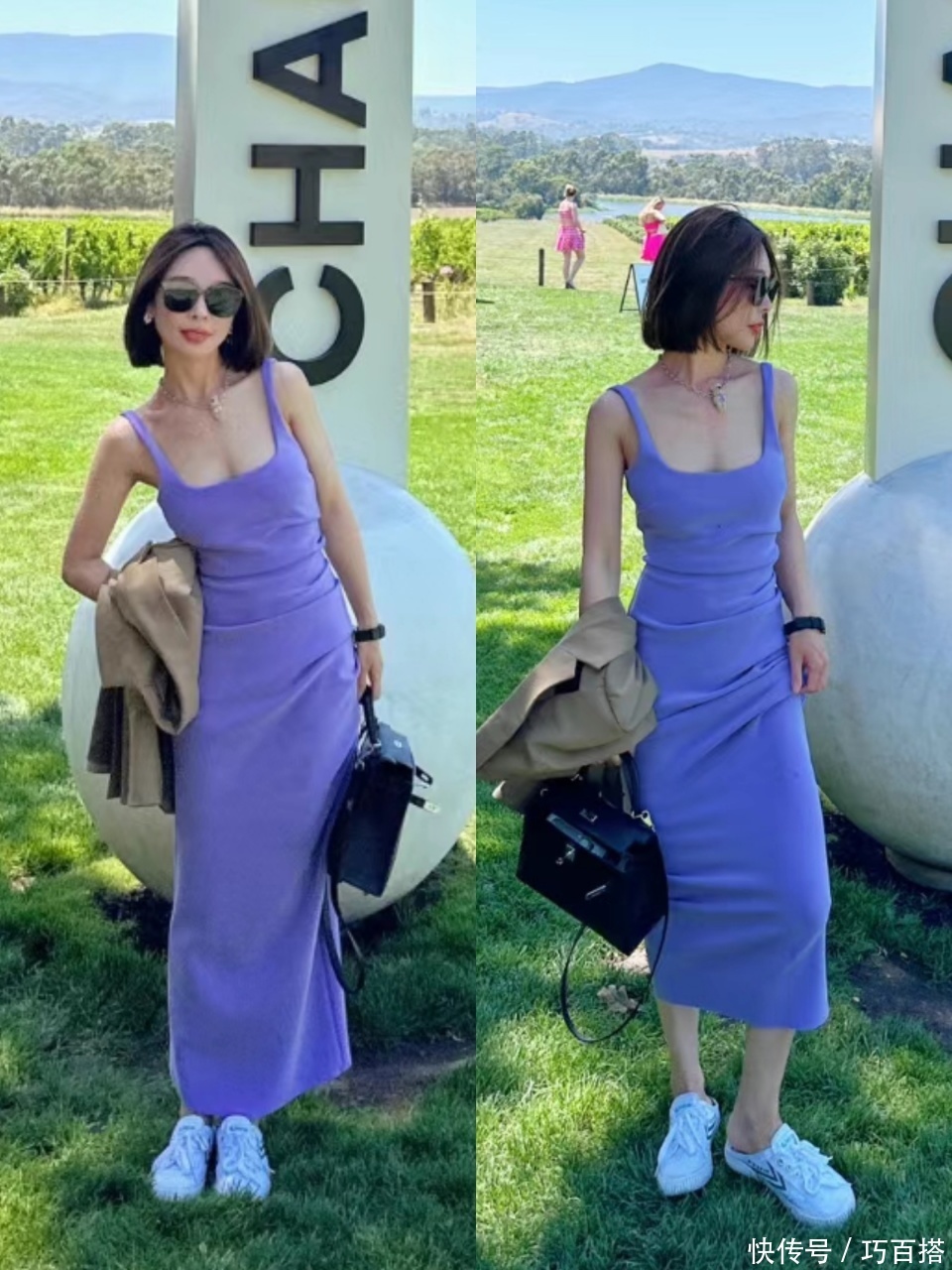 虽然了,可爱连衣裙的一又友也不可错过白色板鞋了,像博主相通,可爱头绪感的一又友,不错尽最大可能挑选对比色搭配,博主接受的紫色吊带裙搭配白色板鞋即是圭表模板。