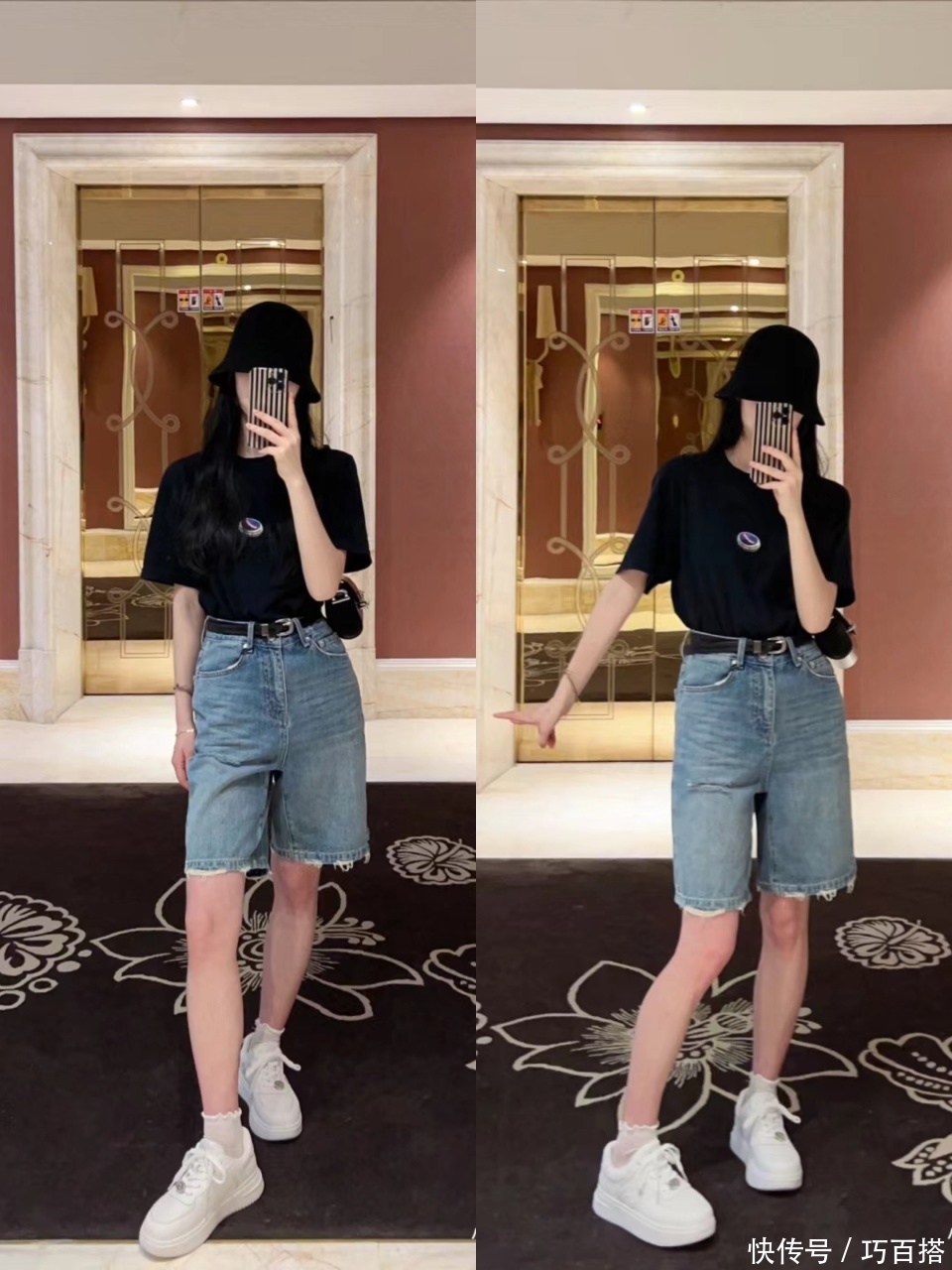 除此以外,环球亦然不错用小白鞋搭配牛仔短裤的,裤腿材质比西装材质挺括,长度比西装短裤短,两者搭配,减龄遵循赫然,30岁傍边的女士学习模仿,最能get到精髓。