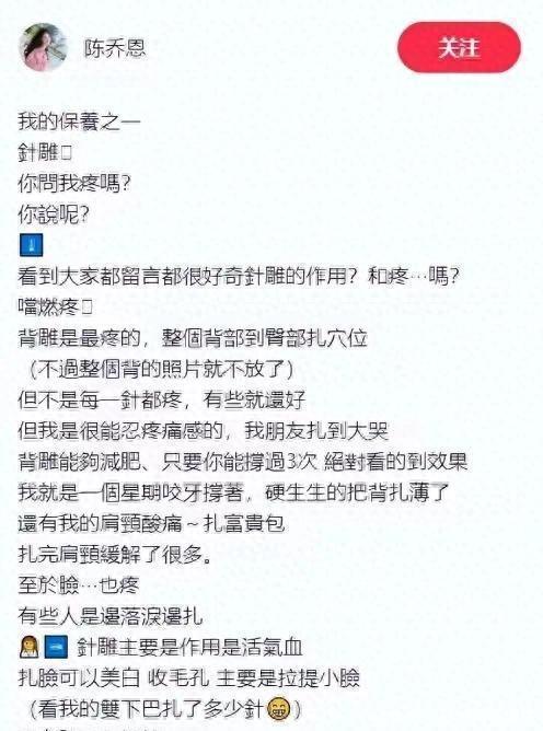 竟然“针雕”的确个神奇的玩意儿,网友偶合看见针雕后的陈乔恩,瞧那皮肤景况,遽然仿佛回到了小小姐的时间,年青了二十岁呢!